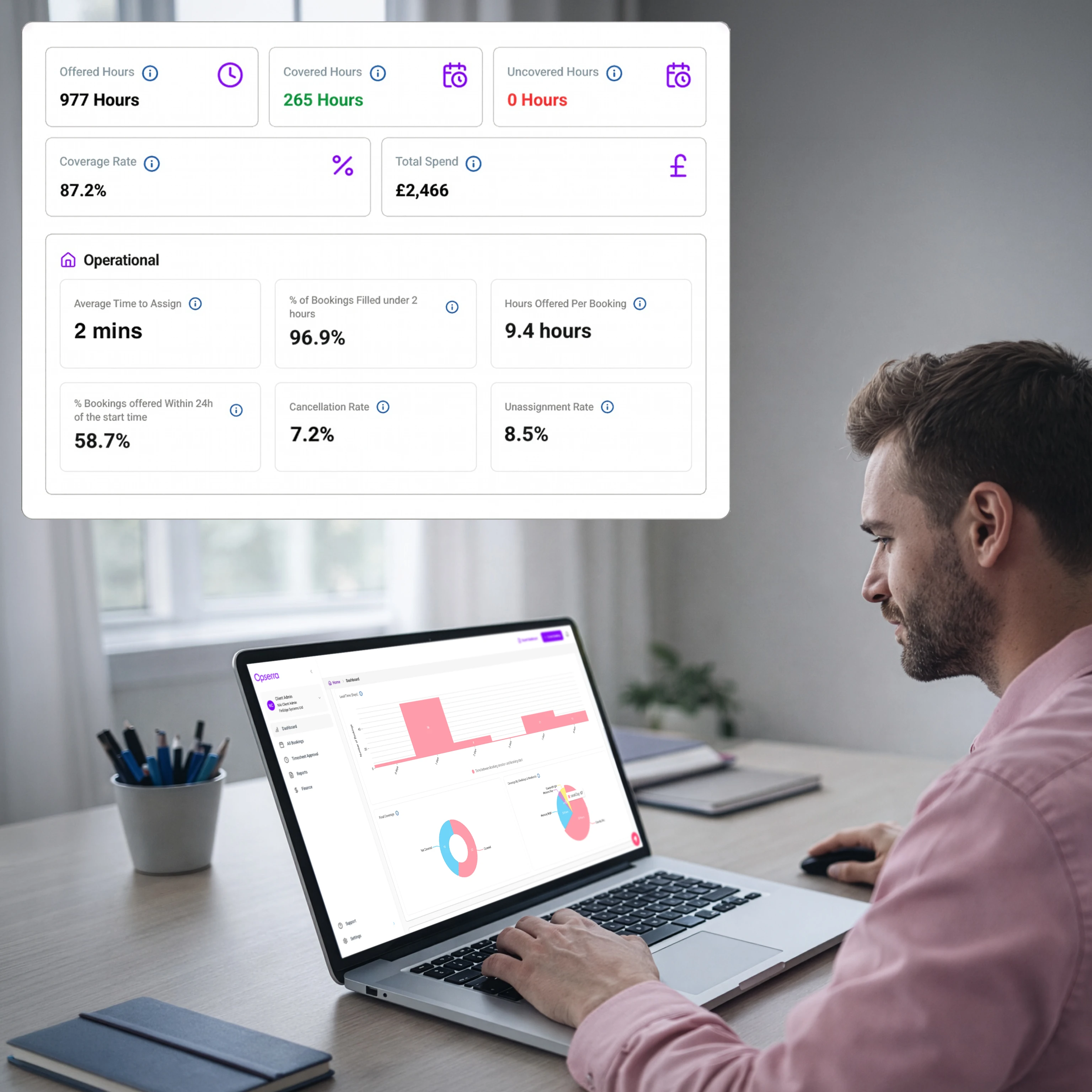 Newcross helps you simplify the model and regain control. Our Opserra software powers the workflows behind the scenes, automating supplier processes and giving you reliable reporting on fill, cost, and compliance so you can plan with confidence.
